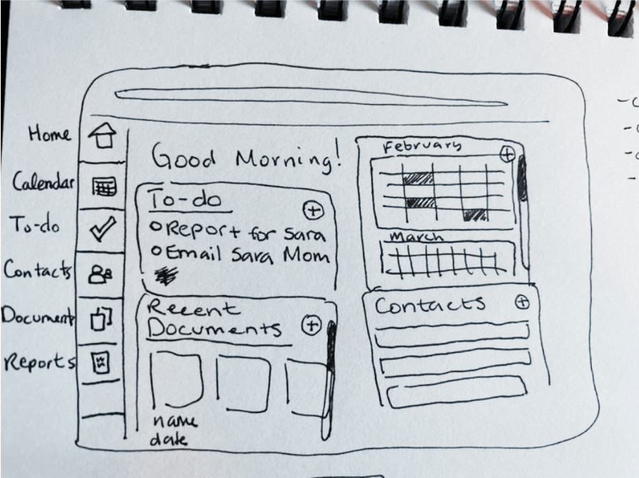 -AFTER SKETCHING THE WHOLE TEAM GOT TOGETHER ON THE WHITEBOARD TO MERGE OUR PERSPECTIVES AND MAKE THE MOST WELL-ROUNDED VERSION POSSIBLE TO GO INTO THE WIREFRAMING PROCESS